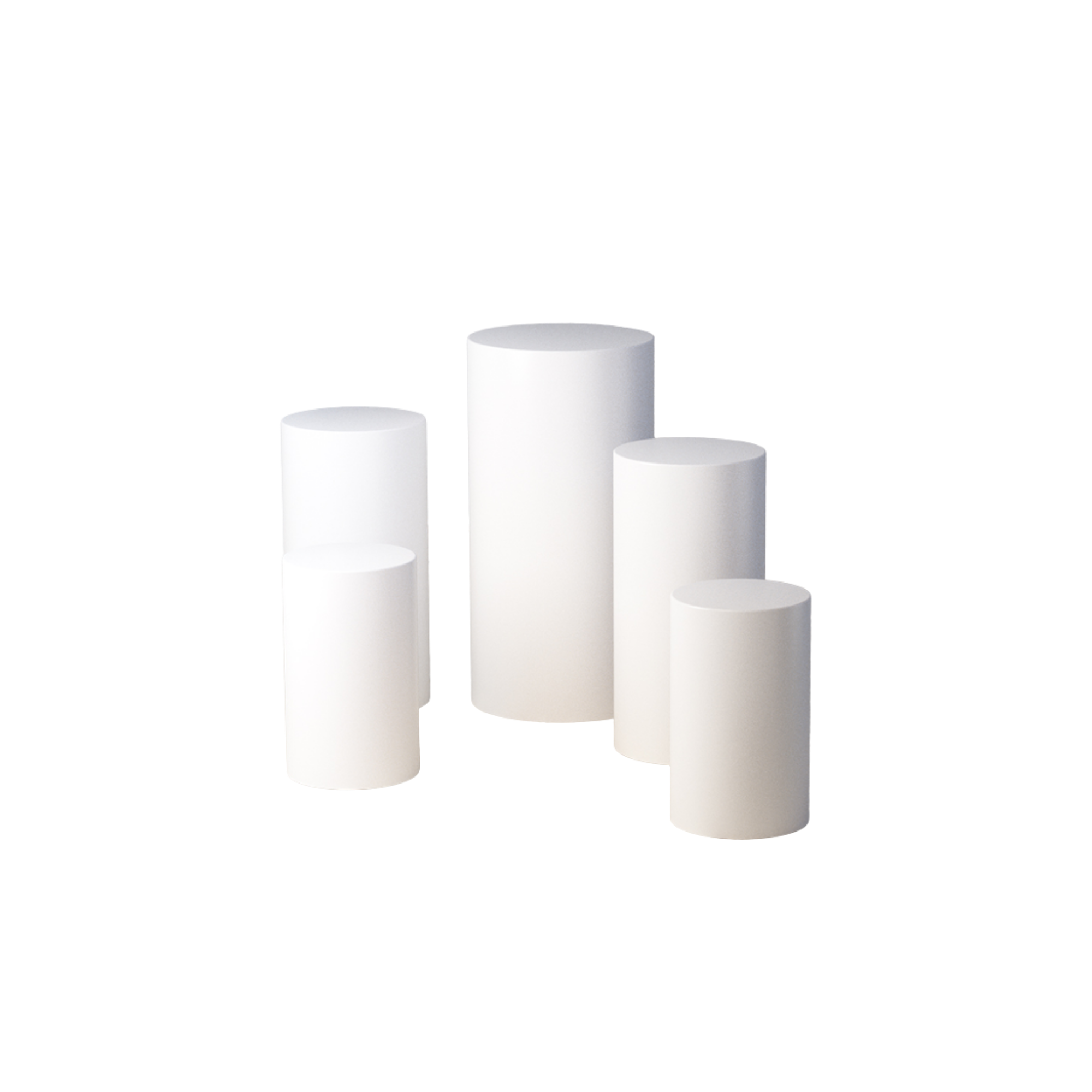 Simple, bold, and effortlessly versatile — our aura cylinder plinths are the perfect base for cakes, florals, or feature décor. Their clean lines and solid design make them a must-have for any event theme.