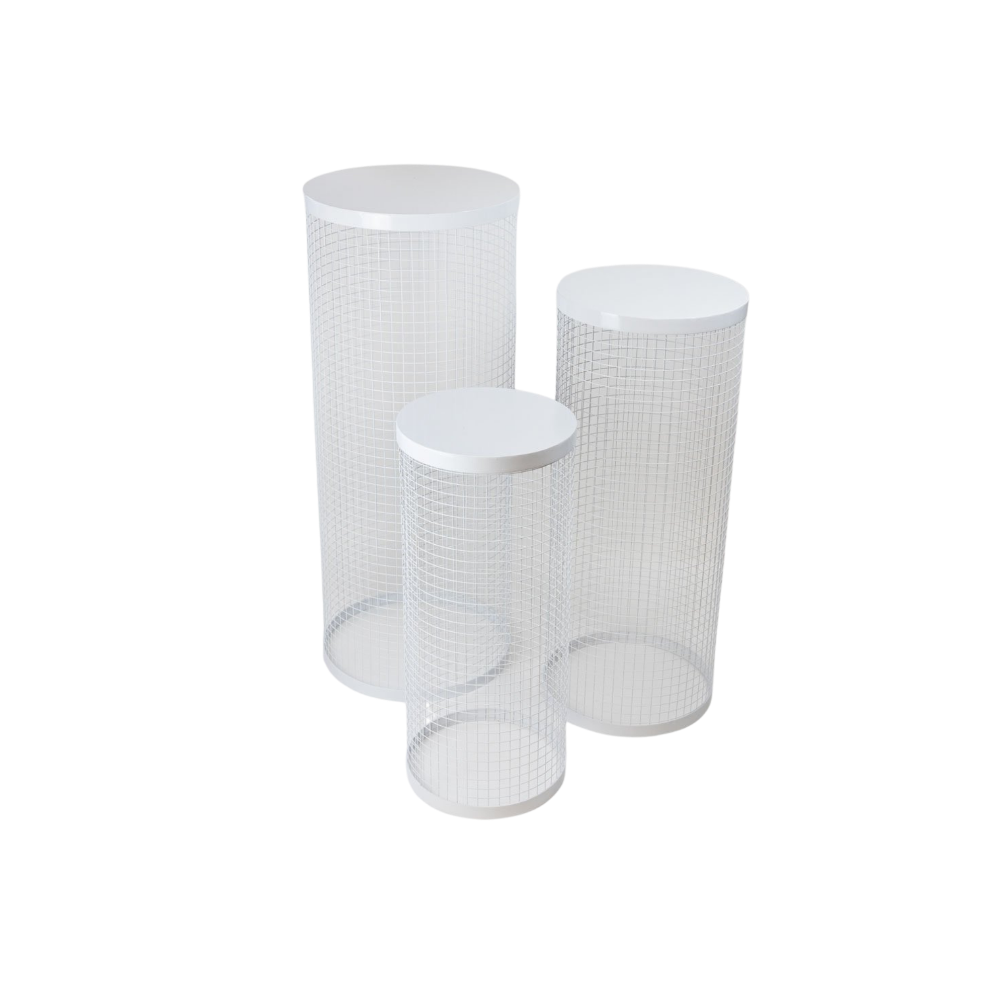 Bold, modern, and full of texture — our grid plinths bring an industrial-luxe edge to any event. Perfect for cakes, florals, or statement décor. Made to stand out.