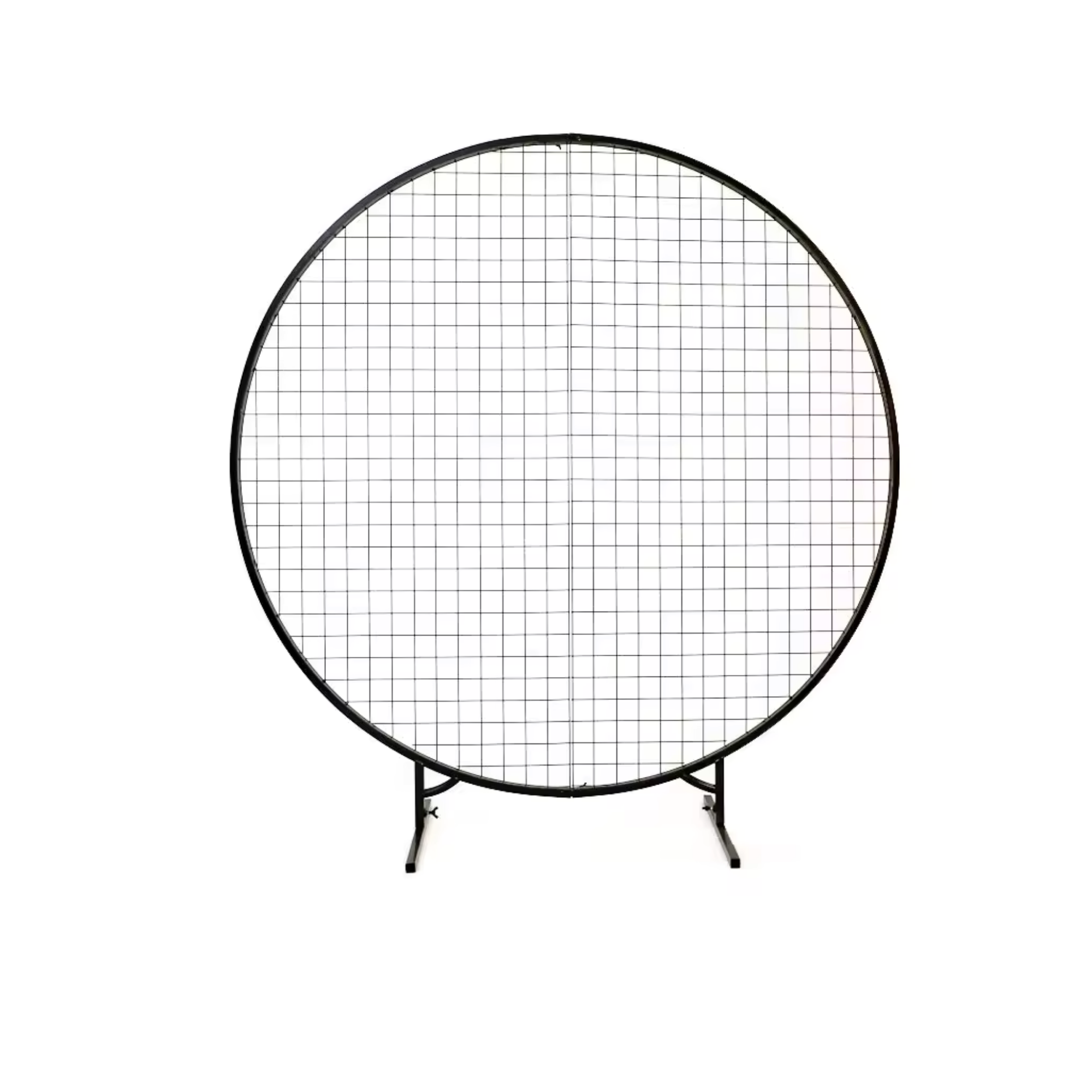 The orbit grid backdrop is a circular frame with airy grid detailing, making it a favourite for weddings, birthdays, or any celebration. Style it with florals, balloons, or signage to match your theme. Detachable into 4 parts